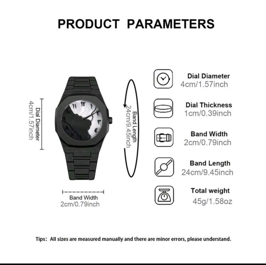 تتميز الساعة بقرص دائري مزين بالدبابيس، مما يضيف لمسة من الأناقة على مظهرك. السوار قابل للتعديل، مما يجعلها مريحة وسهلة الارتداء طوال اليوم.