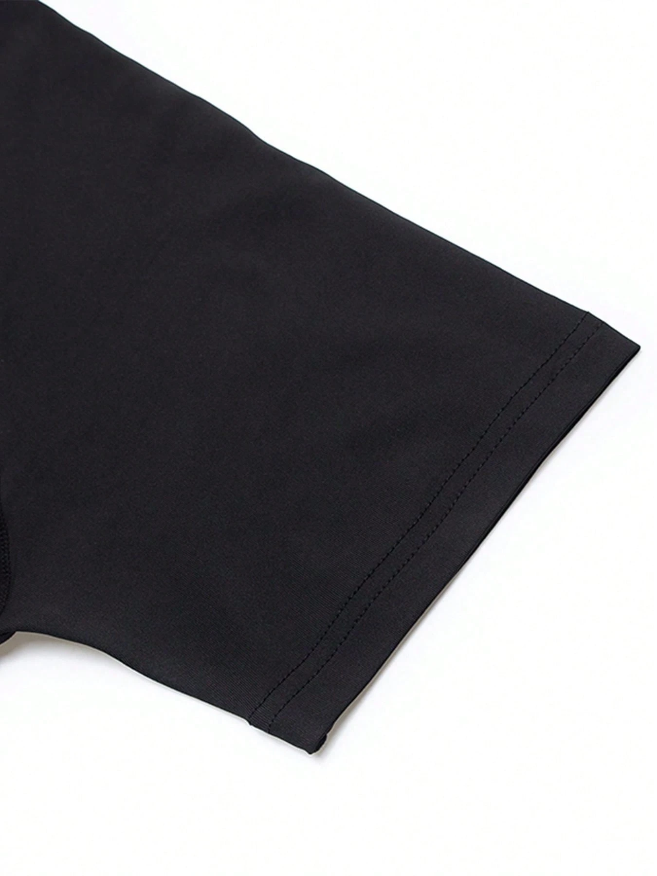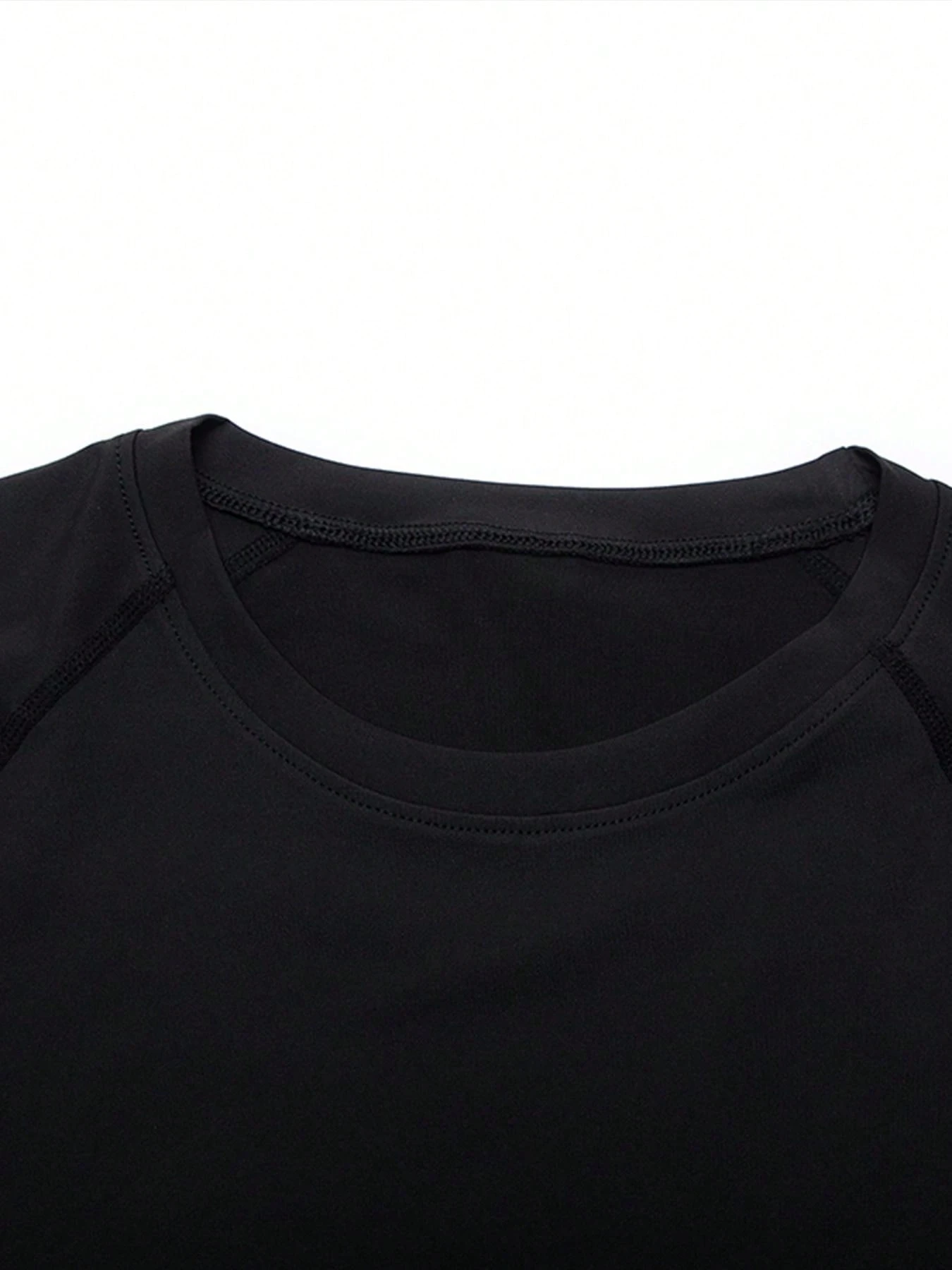 تيشيرت رياضي ضيق باللون الأسود مصنوع من قماش مرن وخفيف، يمنحك راحة وحرية حركة وامتصاص للعرق، مثالي للجيم والتمارين اليومية مع تصميم أنيق.